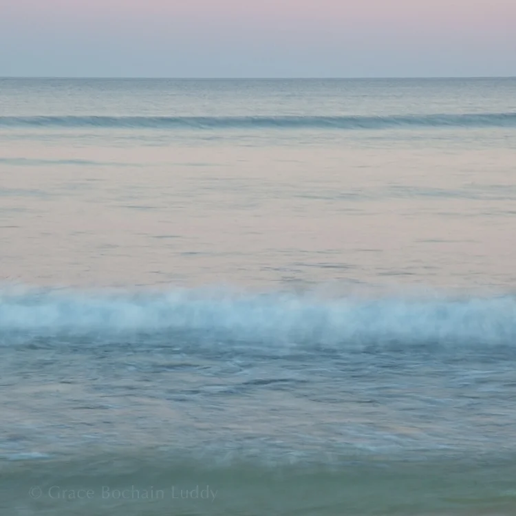 The shutter speed for this picture was 25 seconds. Way longer. And look what happened to the waves. In the first picture you can still discern the form of the wave, but not in the second picture. Waves came in and out again and again, each leaving a trace on the sensor, but nothing defined. All the waves accumulated into the ghostly, smoky, richly colored nothing you see in this picture. And of course the stones were there the whole time, substantial and solid, with nothing to do and all the time in the world.